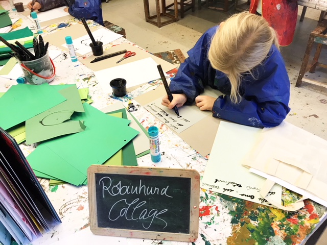 Die Kreativwerkstatt hat vier große Tische, an denen die kleinen Künstler tätig werden können: Entweder ein neues Kinderkunsthaus–Logo erstellen, drucken oder mit wechselnden Farbmaterialien wie Gouache, Wasser- oder Acrylfarben etc. Bilder malen. Aber auch große Kunstwerke wie „Traumschlösser“, Filzschlangen oder Handtaschen werden dort geschaffen.