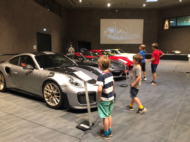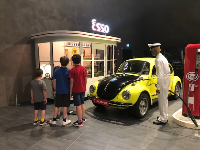 Daneben bietet aber das Museum noch so viel mehr: Eine tolle Blechspielzeug-Sammlung, liebevoll aufbereitet in Schaukästen, die mich sehr an das Spielzeug, das es bei meiner Oma gab, erinnert. Natürlich gibt es auch Porsche-Autos zu sehen! Und jeweils eine große Wechselausstellung; aktuell geht es um den VW Käfer – ebenfalls so sehenswert! Unsere Kids haben sich eine dreiviertel Stunde lang alle Fernsehwerbungen, die in den letzten Jahrzehnten zum VW Käfer veröffentlicht wurden, angesehen. Wir haben Tränen gelacht!