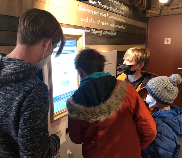 Weil die Dauerausstellung in den drei rekonstruierten Auswandererhäusern des Areals komplett für Kinder gedacht worden ist: Highlight ist das multimediale Spiel „Simmigrant“, das unsere Jungs jeweils auf ihre eigene Auswanderung schickte. Ob als Hippie Richtung Persien oder als Follower (gab’s das Wort damals schon?) des Goldrausches – an Videoinstallationen mit individuellen Fragen konnte jeder sein Auswandererglück versuchen.