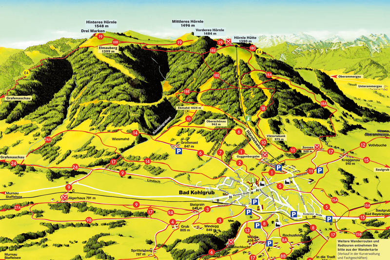 Nach Bad Kohlgrub fahrt Ihr am besten über die A 95 bis nach Oberau, von dort aus über Ettal und Oberammergau bis nach Bad Kohlgrub zur Hörnlebahn. Im Ort ist die Bahn ausgeschildert. Die Hörnlebahn bringt Euch innerhalb weniger Minuten hinauf auf den Berg. Die Bahn selbst ist schon ein Highlight: eine Schwebebahn mit Schwenk-Doppelsitzen, wie Ihr sie wahrscheinlich vorher noch nicht gesehen habt. Unsere Kinder hatten eine Riesengaudi beim Einsteigen. Von der Bergstation aus lassen sich die drei Gipfel wunderbar mit wenig Anstrengung innerhalb von zwei Stunden besteigen. Die gesamte Strecke ist weder steil noch ausgesetzt, somit gut mit Kindern machbar.