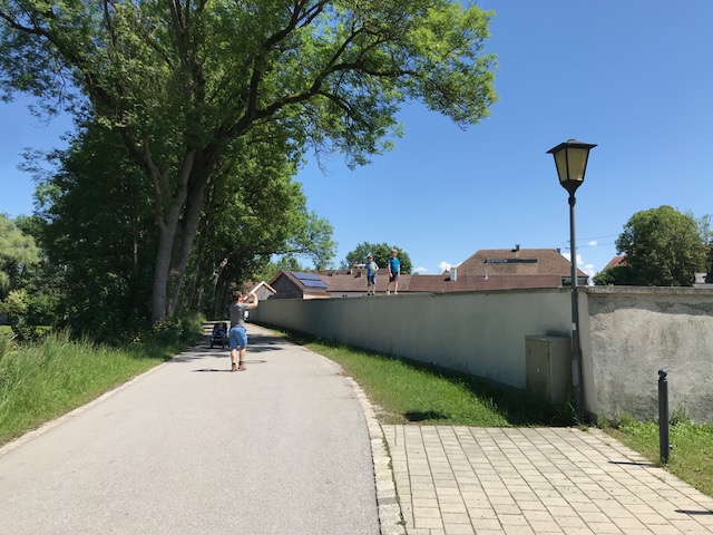 Ausgangspunkt unserer Wanderung ist der Kirchplatz im Ortskern. Das erste von insgesamt 13 Schildern erklärt uns den Hintergrund des Rundweges. Es gibt sogar eine kleine Box, in der wir uns einen Flyer mit einer Karte nehmen konnten, um auch immer zu wissen, wohin uns der Weg führt. Auf geht´s entlang eines kleinen Baches, vorbei an liebevoll gepflegten, bayerischen Häusern durch den Ort, den Ihr aber relativ schnell verlässt. Der weitere Weg führt Euch über einen Bahnübergang zum Ammerberg, der aber eher ein Hügel als ein Berg ist. Von hier aus habt Ihr einen herrlichen Blick auf die Umgebung! Weiter geht es zum Streicherweiher, einem klitzekleinen See, an dem unsere Kids erstmal ausgiebig Steine schmeißen mussten. Anschließend wird der Weg entlang des Weihers und durch den kurzen Waldabschnitt ein wenig holprig und eng – aber mit dem Kinderwagen mit etwas Muskelkraft allemal machbar. Anschließend geht es über große Wiesen, an Bauernhäusern und -höfen vorbei, zurück zu Eurem Ausgangspunkt, dem Kirchplatz.