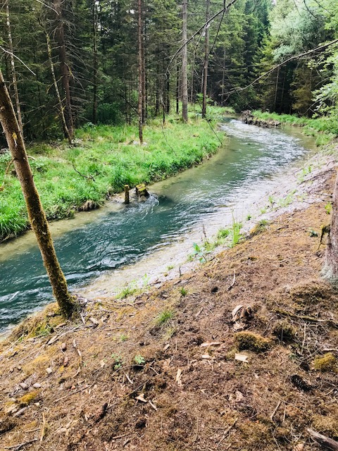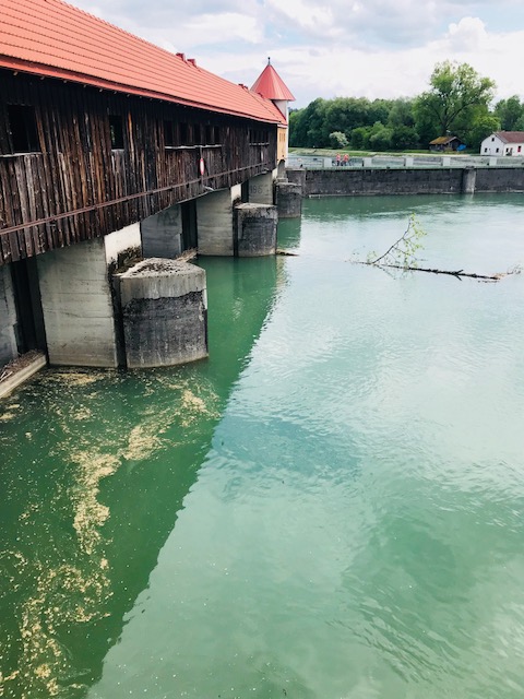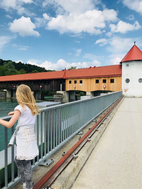 Der Weg führte uns nun für rund 2,3 km entlang des Isarkanals, bis wir an das eindrucksvoller Ickinger Stauwehr gelangten. Unsere Kinder waren ganz beeindruckt von den Wasserkräften, die dort freigesetzt werden. Schließlich überquerten wir die Brücke, anschließend den überdachten Teil des Stauwehrs. Dann ging es entlang der natürlichen Isar und des Auenbaches durch die Isarauwälder, zur aktuellen Jahreszeit einem wunderbaren Dschungel. Die Kinder fanden es hier unglaublich toll! Sie spielten mit Wasser, Lianen und Zauberholz.  In den Isarauwäldern solltet Ihr unbedingt mehr Zeit einplanen und vielleicht auch eine kleine Zwischenrast einlegen!
