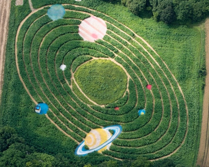 Ebenfalls in Utting findet Ihr das kunstvolle Labyrinth „Ex Ornamentis“. Das Labyrinthfeld besteht aus Mais, Hanf, Sonnenblumen und wilder Malve mit wechselnden Motiven wie die Deutschlandkarte oder das Piratenschiff, die Ihr vom Aussichtssturm bewundern könnt. Dieses Jahr ist das Motiv: Quer durch das Sonnensystem. Im Labyrinth gibt es ein Suchspiel. Die Großen unter Euch beantworten Fragen und die Kleinen sammeln Stempel. Darüber hinaus findet Ihr Kürbistunnel mit unzähligen verschiedenen Kürbissorten und das beliebte Strohballenstadion zum Spielen, Verweilen und Picknicken. Das Labyrinth ist vom 24. Juli bis zum 25. September geöffnet.
