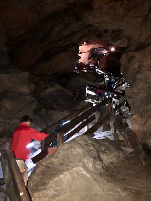 Der Weg durch die Höhle dauert circa eine Stunde, Pausen sind hier nicht eingerechnet. Für Kleinkinder ist die Höhle nicht geeignet, aber für Kids im Grundschulalter ist sie eine echte Sensation. Unsere Kinder im Alter von 14 bis 7 Jahren waren begeistert! Es gibt sogar einen kleinen Bach in der Höhle. Nehmt aber warme Kleidung mit, denn es hat das ganze Jahr über zwischen 4-6°´Grad Celsius. Uns ist es eigentlich nicht aufgefallen, dadurch, dass wir andauernd in Bewegung waren, aber sicher ist sicher. Ihr überwindet auf circa 700 Meter Wegstrecke 70 Höhenmeter, die uns aber gar nicht anstrengend vorkamen. Die Lamprechtshöhle ist übrigens die längste Durchgangshöhle der Welt!