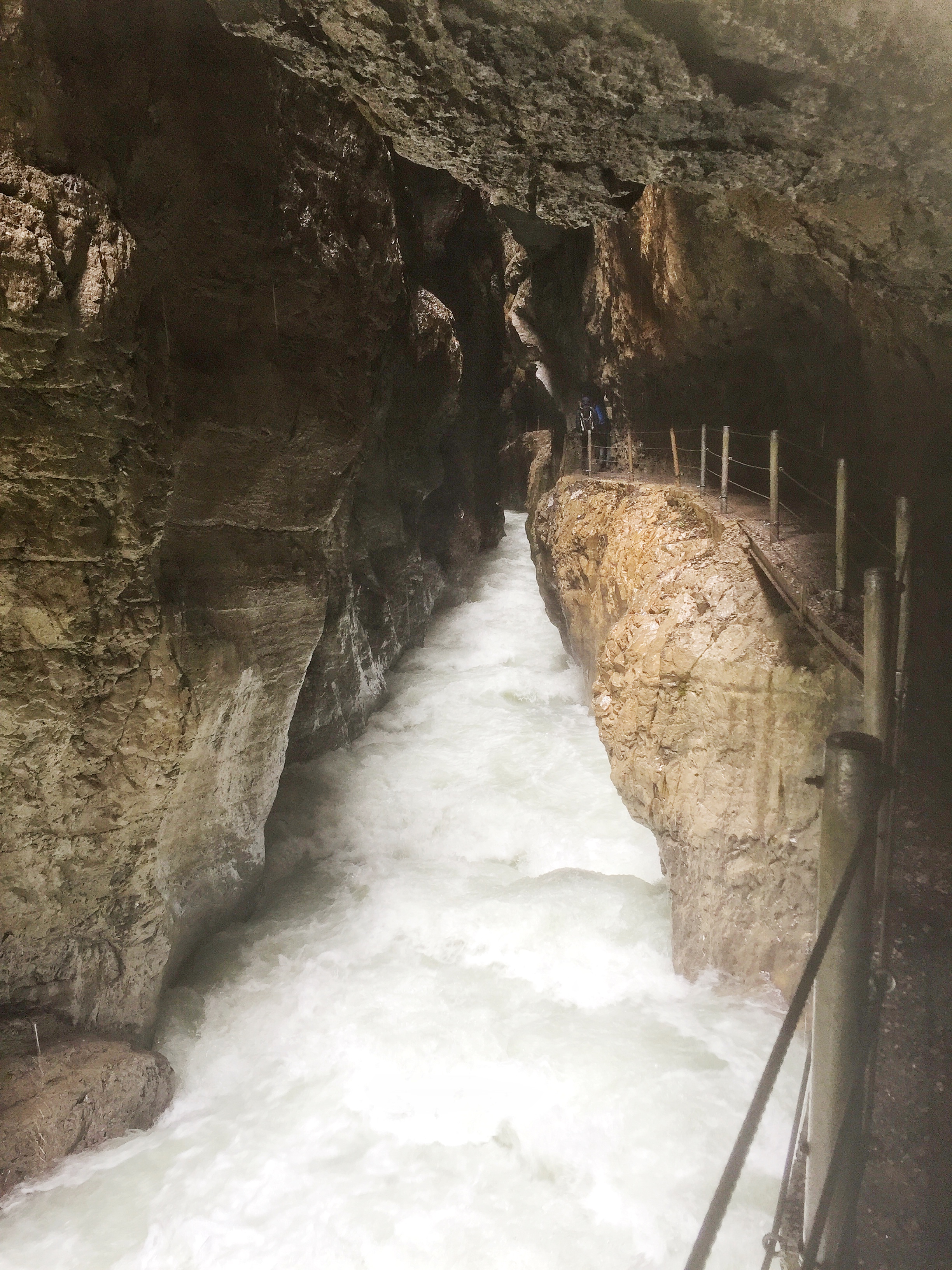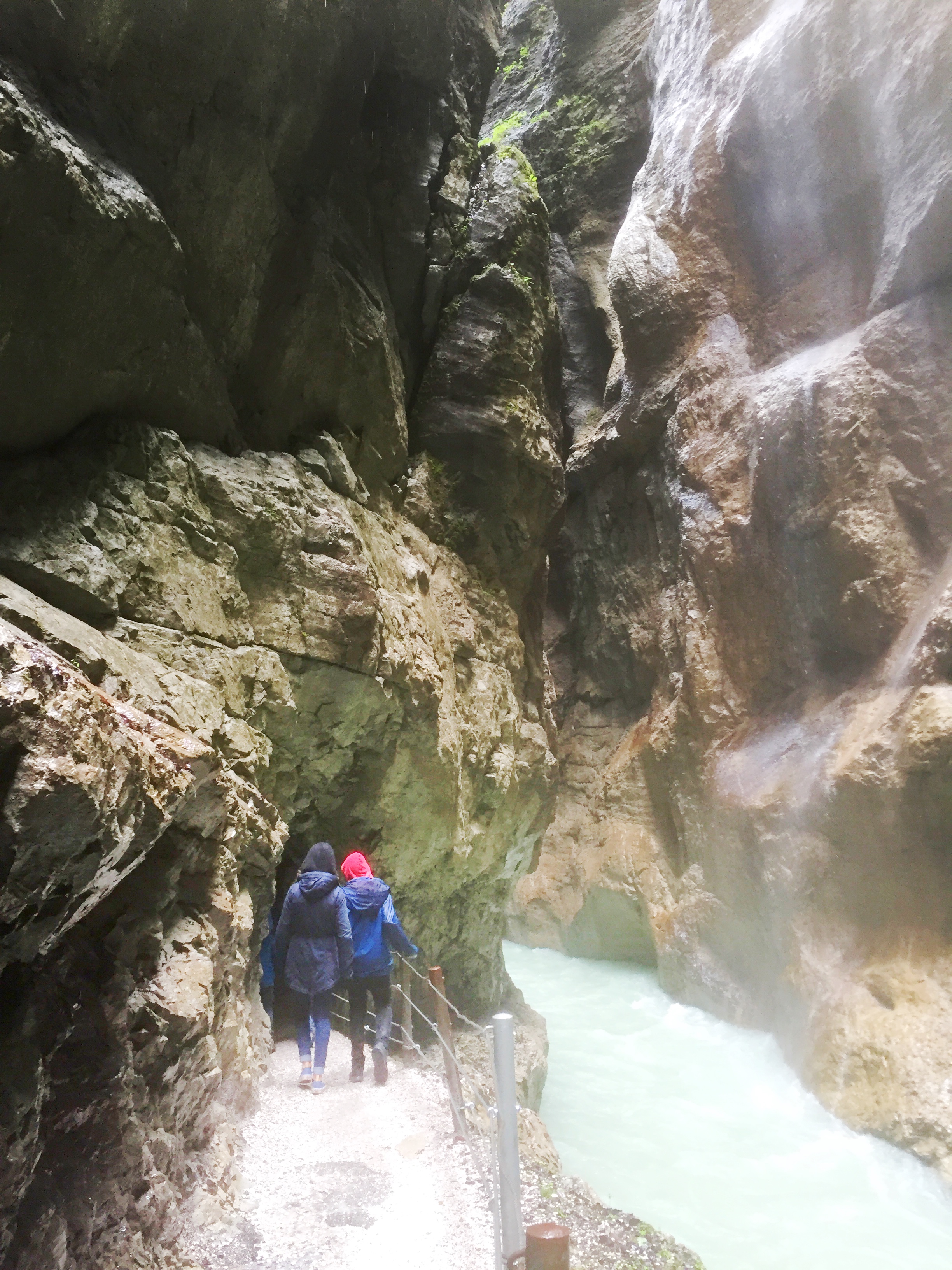 Von der Schanze folgt Ihr den Hinweisen zur Klamm. Solltet Ihr ein Spektakel aus dem Hinweg zur Klamm machen wollen, dann steigt in eine der am Startpunkt des Pfades in eine der wartenden Kutschen (natürlich kostenpflichtig). An der Klamm angekommen, wandert Ihr ca. 700 m lang auf eisernen Wegen durch eine steile, enge Klamm. Das Wasser tropft von den Wänden, unter Euch sprudelt, zischt und gischt es und ihr fühlt euch eher wie in einem amerikanischen Nationalpark als ein paar Meter von Garmisch entfernt. Achtung: Die Klamm ist nicht Kinderwagen-geeignet und Kinder bis mind. 4 Jahren sollten unbedingt an Eurer Hand gehen. Sie ist aber wirklich ein unvergessliches Erlebnis.