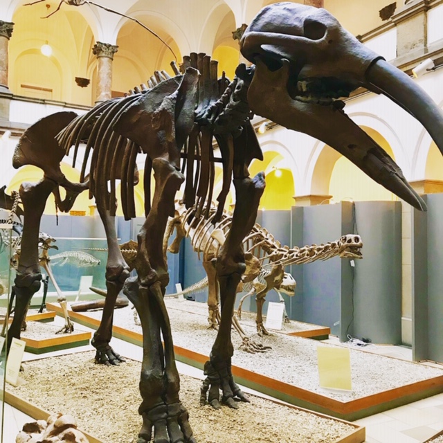 In Maxvorstadt in der Nähe des Königsplatzes, ganz versteckt hinter dem imposanten Lenbachhaus, befindet sich das Paläontologische und Geobiologische Museum München. Es zeigt die öffentlich zugängliche Bayerische Staatssammlung der Entwicklungsgeschichte der Erde und des Lebens mit Wirbeltieren, Reptilien und Pflanzen. Das Museum ist klein und schnuckelig und es machte uns viel Spaß die beeindruckenden Skelette von Reptilien aus der Zeit der Dinosauriern, Flugsaurier, Fischsaurier sowie Säugetiere aus der jüngeren Erdgeschichte. Neben dem größten Dinosaurier Bayerns ist das Skelett des berühmten Mühldorfer Ur-Elefanten zu sehen, genauso wie ein Säbelzahntiger, Höhlenbär und Riesenhirsch, der Urvogel Archaeopteryx und der kleinste Dinosaurier Bayerns, der Compsognathus.