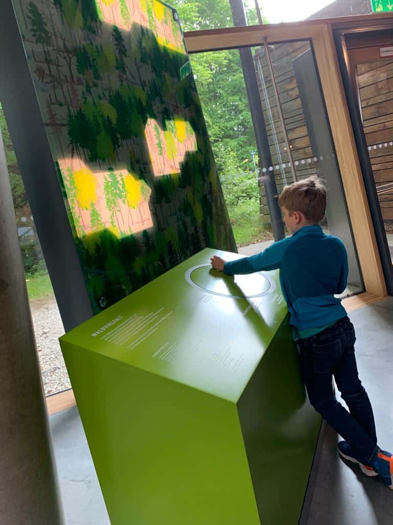 Unser erster Stopp war das Haus zur Wildnis, das Besucherzentrum, wo wir eine spannende und informative Ausstellung über die Natur des Bayerischen Waldes und den Nationalpark besuchten. Unsere Kinder waren besonders fasziniert von den interaktiven Displays, die ihnen einen Einblick in die einheimische Tierwelt gaben. Sogar einen “Bayerischer Wald bei Nacht”-Raum gab es, in dem uns erst in völliger Dunkelheit Tiergeräusche vorgespielt wurden. Und wir dann sehen konnten, um welche Tiere es sich handelt. Aber auch der 3D-Film mit wunderschönen Naturaufnahmen des Bayerischen Waldes kam bei den Kids super an. Bei schlechtem Wetter können sich die Kids im Kindererlebnisraum austoben (tolles Kletterangebot). Bei Sonnenschein gönnt Ihr Euch einen Kaffee im hauseigenen Biergarten und beobachtet die Kinder auf dem großen Außenspielplatz.