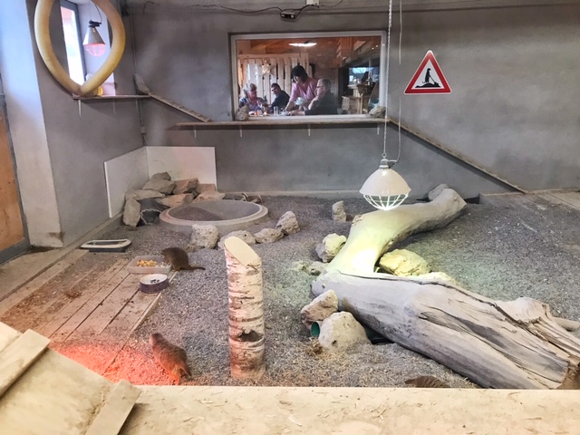Bei den Erdmännchen hat der Saliterhof alles gegeben. Der Käfig, bzw. das Großraumgehege, dass das Personal den putzigen Tierchen gebaut hat, ist phänomenal. Mit langen Rohren, durch die die geselligen Tiere laufen können, und massenweise Rückzugsmöglichkeiten. Besonders nett: Im Restaurant gibt es ein riesiges Fenster, durch das ihr die Erdmännchen beobachten könnt. Unsere Kids drückten sich die Nasen an der Scheibe platt.